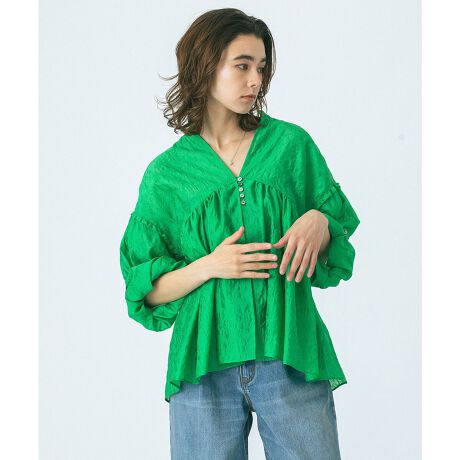 たっぷりとした袖のシルエットが目を引く、軽やかなブラウス。