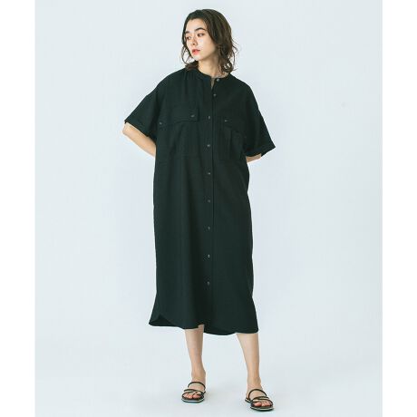 ・天然素材のような表面感が魅力の、落ち感のある生地を使用したシャツワンピース