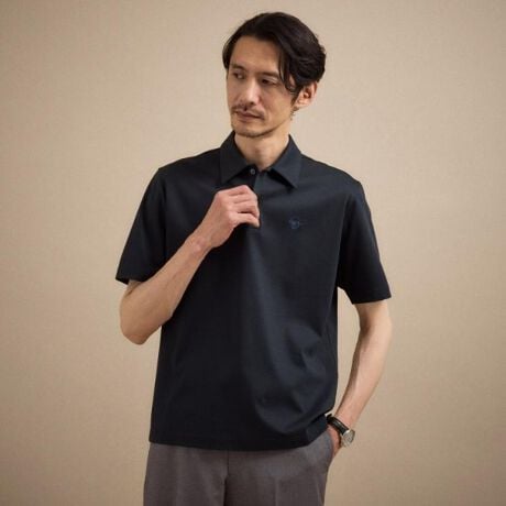 接触冷感機能のあるキレイめポンチ素材のワンポイントポロシャツ