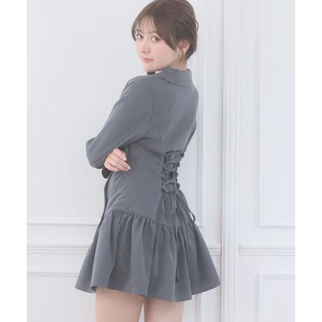 テーラードのきちんと感はそのままに、バックのレースアップデザインで女性らしさをプラス。