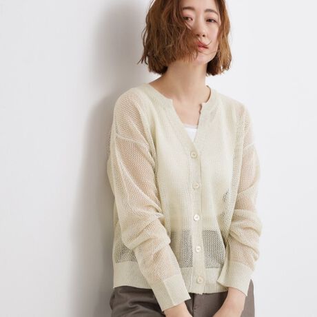 軽やかなきらめきを纏う、洗練メッシュニットカーディガン。