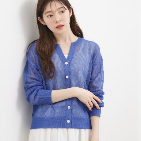 軽やかなきらめきを纏う、洗練メッシュニットカーディガン。