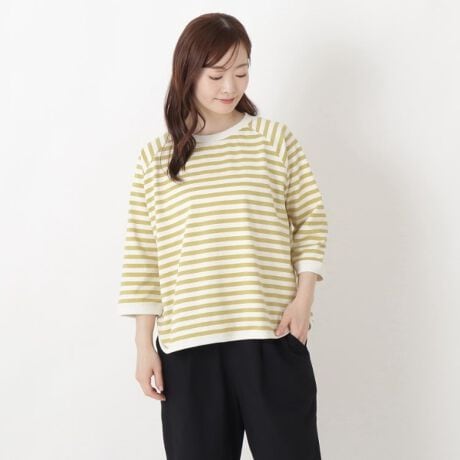 やわらかで明るいカラーが目を惹く春色ボーダー。ほどよいシルエットでデイリーに馴染みます。