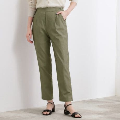 脚のラインをすっきり見せるテーパードシルエットのパンツです。