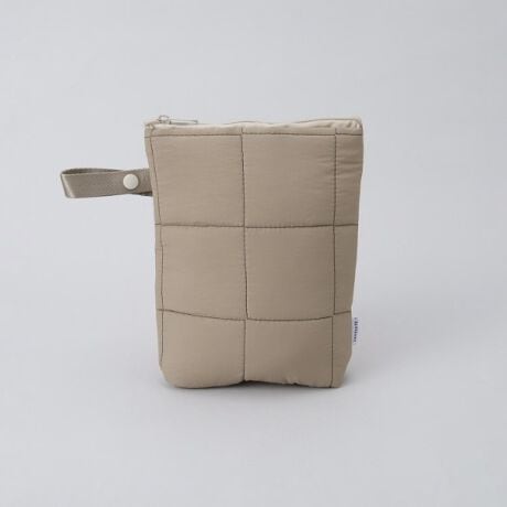 キルティングパターンがなんともほっこりするポリエステル素材の保冷のポーチ。