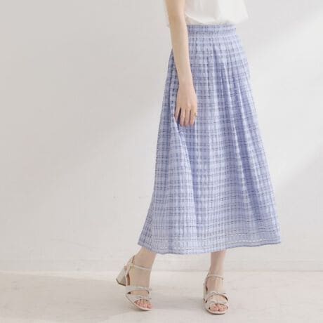 ウエスト部分が畳まれたタックがアクセントとなっており、TOPSをインして着用して頂くのがおススメです。