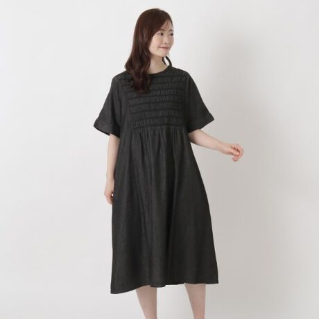 3.5ozの軽量デニムにスモッキング刺繍を施したワンピース。