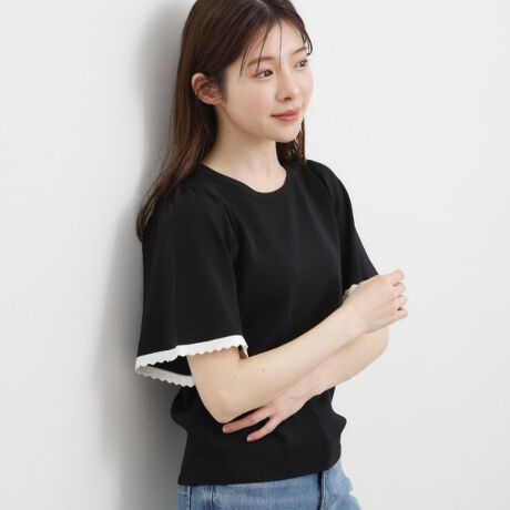 袖口に配色スカラップをあしらったフレアスリーブニットです。