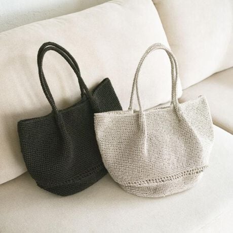 メタリック糸をメッシュで編み上げた、軽やかな輝きのトートバッグです。