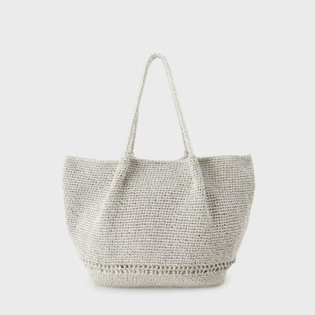 メタリック糸をメッシュで編み上げた、軽やかな輝きのトートバッグです。