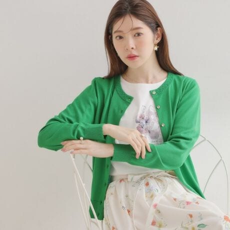 【アンサンブル可】ポイント透かしビジュー釦カーディガン