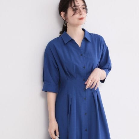 ピンタックデザインでウエストラインをキレイに魅せる、フィット&フレアワンピース