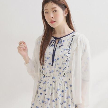 ドロップショルダーでコンパクトな丈感のシアーニットジップアップブルゾン