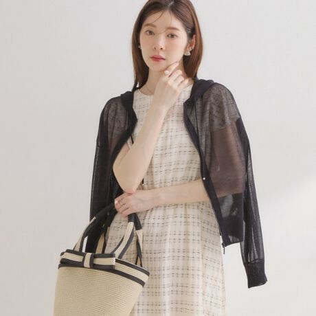 ドロップショルダーでコンパクトな丈感のシアーニットジップアップブルゾン