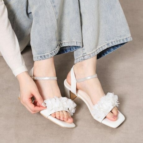 トレンドの立体フラワーモチーフをあしらったサンダルです。