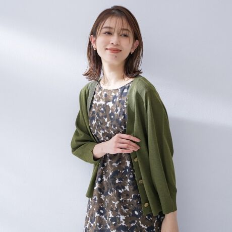 程よい開きのVネックが首元を美しく見せるカーディガン。