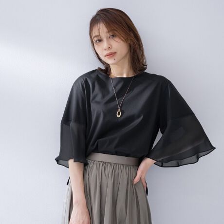 シアー素材を使ったお袖が印象的なプルオーバー。