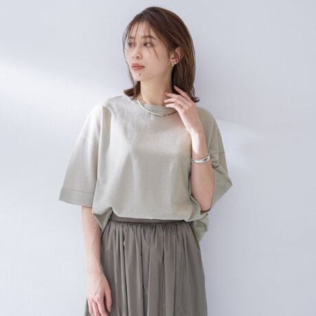 身体のラインを拾いにくいゆったりとしたシルエットで、大人の余裕を感じさせる一枚です。