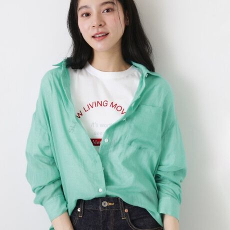 ほんのり透ける軽やかなシアー素材が、涼しげな印象を与えるシャツ。