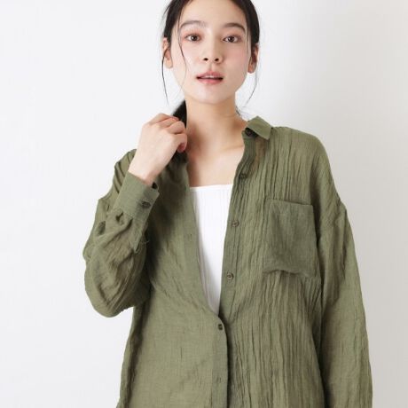 ほんのり透ける軽やかなシアー素材が、涼しげな印象を与えるシャツ。