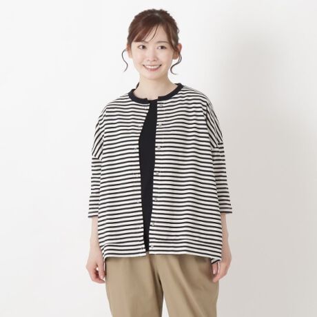 ふんわりとしたシルエットが春らしい、軽やかなボーダーカーディガン。