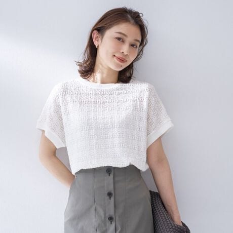 繊細な透け感が印象的な、ストレッチレースを使用したプルオーバー。