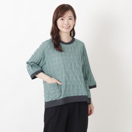 落ち着いた色合いのアイボリーとグリーンチェック柄の展開です。