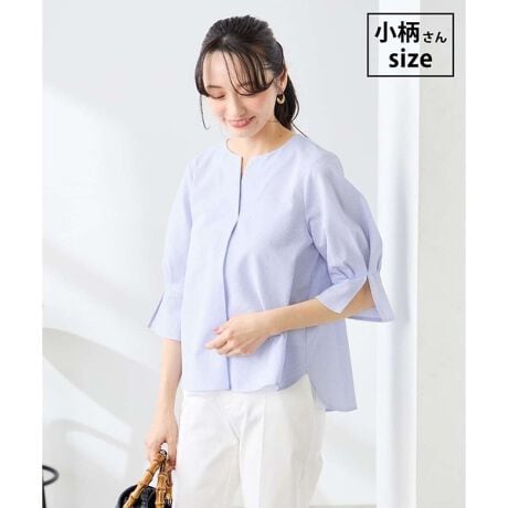 清涼感のあるサッカー素材のブラウス。