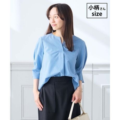清涼感のあるサッカー素材のブラウス。