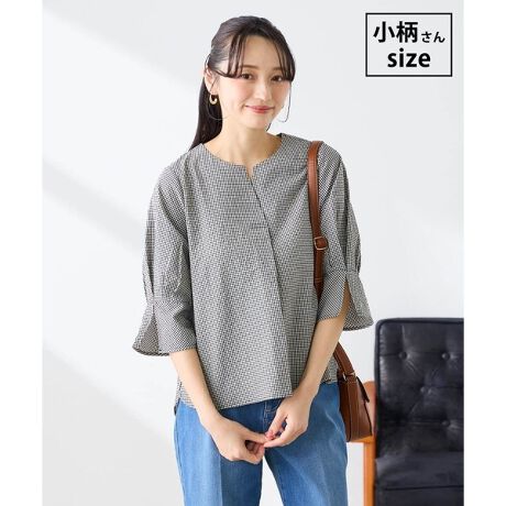 季節の変わり目にちょうど良い五分袖もポイントのブラウスです。
