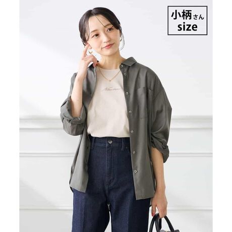前を開けて羽織りでも、タックインもできる長さで一枚着としても活躍する汎用性の高いシャツです。