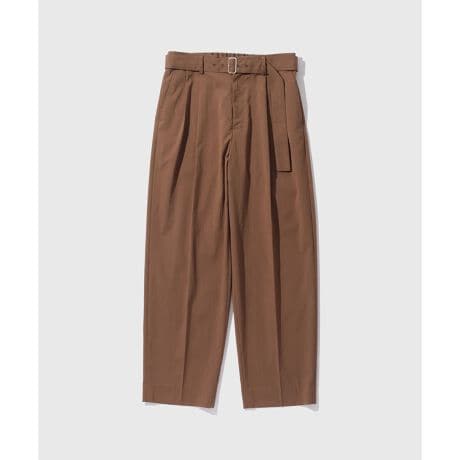 ・股上を少し深めに設定したハイウエスト気味で裾に向かってややテーパードが効いたベルテッドワイドツータックイージーパンツ