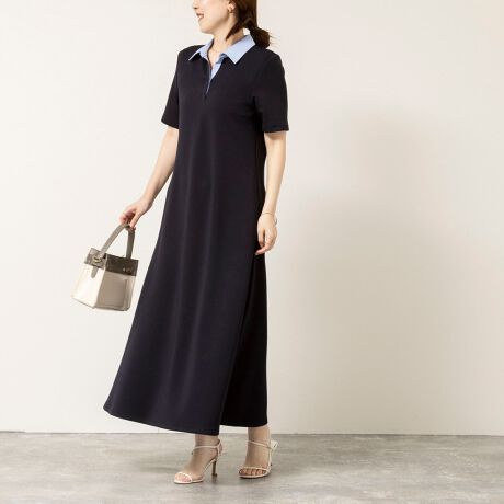 ウォッシャブルポロ襟ダンボールフレアワンピース