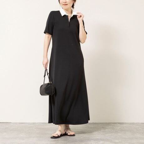 ・シャツ素材で切替えた配色の襟がポイントのダンボールワンピース