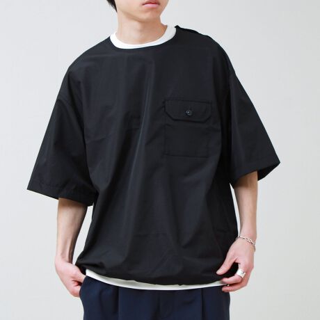 布帛素材を使用した、ミリタリー素材の半袖カットソー。