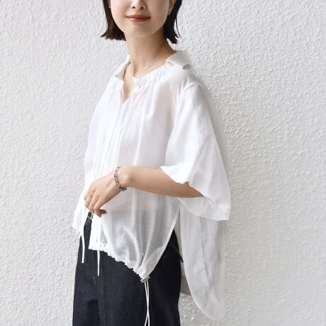 《予約》【WEB限定】〈手洗い可能〉バルーン スリーブ 裾 ドロスト ブラウス