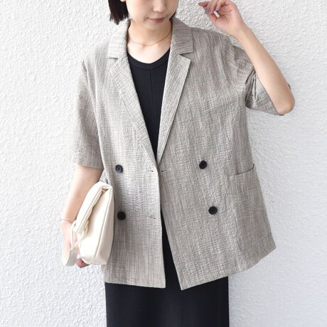 表面感のあるチェック柄生地が特徴の半袖ジャケット。