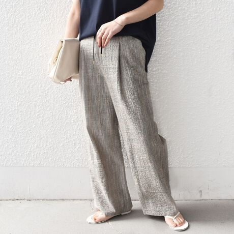 表面感のあるチェック柄生地がアクセントなったイージーパンツ。