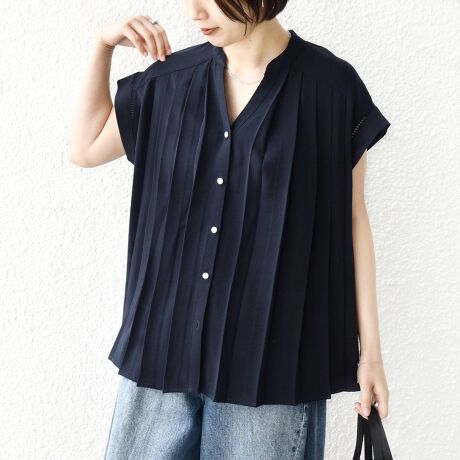 フロントにプリーツ加工を施しスキッパー襟のさわやかなデザインに仕上げました。