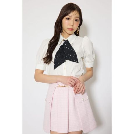 【スカーフアイテムがトレンディなコンパクトブラウストップス】■ポイントトレンドのスカーフアイテムをセットにしたスタイリッシュなブラウス。身頃は張り感のある素材を採用し、スカーフの部分は滑らかな落ち感のある素材で製作しました。素材でコントラストをつけているのがポイントです。またスカーフは今季注目されているドット柄を用いてより女性らしさを出しました。■ディテールスカーフを通すところにメタルのハトメを施し、アクセサリー入らずで華やかに決まります。また、前後共にプリンセスラインを入れることでボディがスタイリッシュに決まりコンパクトに着られます。■スタイリングミニボトムスやパンツスタイルに簡単に合わせるだけで華やかに決まるのでお勧めです。■生地透け感:ややあり裏 地:なし伸縮性:なし光沢感:なし厚 さ:なし■商品のお気に入り登録お気に入りアイテムの再入荷・在庫1点などの通知を受け取ることができます。[注意事項]※画像の商品はサンプルです。実際の商品と仕様、加工が若干異なる場合があります。※画像の商品は光の照射や角度、お使いのモニター環境により、実物と色味が異なる場合がございます。※着用、お取り扱いの際は、アテンションタグをご確認ください。