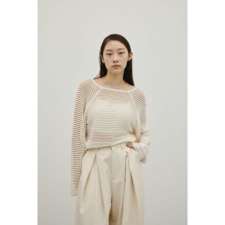 モデル身長163cm(FREEサイズ着用)異なる色のコットン糸とレーヨン糸を組み合わせて編み立てた、表情豊かなメッシュニット。後ろを大胆に開けたバックオープンデザインが、抜け感とモードな印象をプラス。身幅やアームホールをあえてゆったりと仕上げたルーズシルエットで、リラックス感のあるバランスに仕上げました。ざっくりとした編地が軽やかな印象を与え、タンクトップやキャミソールなどのインナーとレイヤードはもちろん、ワンピースの上から重ねるスタイリングもおすすめです。ストレッチあり、透け感あり。【お手入れ方法】手洗い可