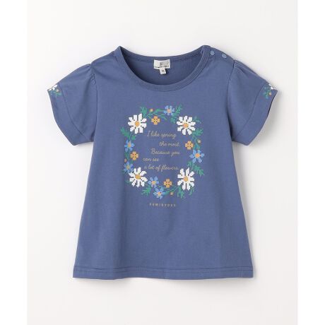 ■デザインメッセージの周りにお花のクロスステッチ風プリントをあしらったTシャツです。