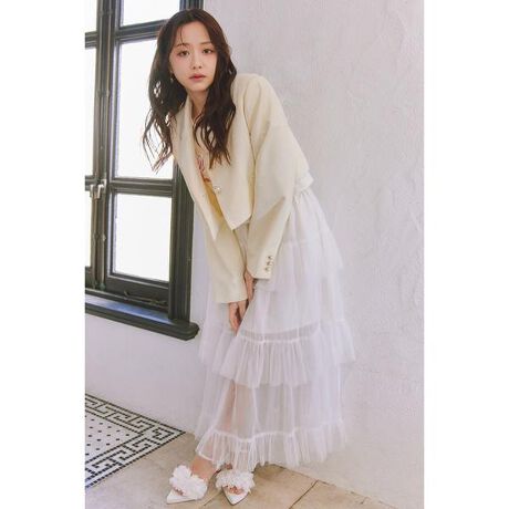 【着るだけでトキメキを与えてくれるティアードチュールスカート】■ポイント贅沢に重ねたチュールがドラマティックな印象を与えるチュールスカート。程よいボリュームのあるティアードデザインで、360度どこから見てもふんわりと華やかに演出してくれます。歩くたびにふわりと揺れるシルエットが、気分まで高めてくれる一枚。■ディテール柔らかく透け感のあるチュール素材を重ねて、軽やかさと立体感を演出。裏地付きで安心感があり、ウエストは後ろゴムになるので、着心地も抜群です。膝下からは透け感を出すことで、抜け感がでて、軽やかな装いになるので、トップスも選ばずに着用しやすくしました。■スタイリングブラウスをインしてドレッシーに、Tシャツやニットと合わせてカジュアルダウンもおすすめ。パンプスやサンダルを合わせてパーティーやお呼ばれにも、スニーカーでデイリーにも活躍する万能アイテムです。ベルトループをセットしたので、ベルトをとおしてメリハリあるスタイリングにするのもお勧めです。■生地透け感:チュール/あり、裏地/無なし裏 地:あり伸縮性:なし光沢感:なし厚 さ:薄手■商品のお気に入り登録お気に入りアイテムの再入荷・在庫1点などの通知を受け取ることができます。[注意事項]※画像の商品はサンプルです。実際の商品と仕様、加工が若干異なる場合があります。※画像の商品は光の照射や角度、お使いのモニター環境により、実物と色味が異なる場合がございます。※着用、お取り扱いの際は、アテンションタグをご確認ください。