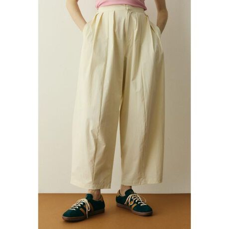 ゆったりとした綺麗なコクーンシルエットにこだわったメニータックパンツ綺麗目にもカジュアルにもスタイリング可能でオールシーズン楽しんでいただけます。ボリュームもしっかりあり、コンパクトなトップスもゆったりとしたボリュームのあるトップスに合わせても◎ナイロン4WAYストレッチ素材。さらっとした肌さわりでキレイめに仕上げた素材です。メニータックコクーンパンツ[注意事項] ※画像の商品はサンプルです。実際の商品と仕様、加工が若干異なる場合があります。 ※画像の商品は光の照射や角度、お使いのモニター環境により、実物と色味が異なる場合がございます。 ※着用、お取り扱いの際は、アテンションタグをご確認ください。