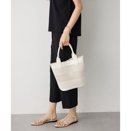 [型番:356101]軽やかに持てるパンチングバッグパンチングデザインが涼しげな印象を与える、夏にぴったりのバッグ。抜け感のある見た目でコーデに軽さをプラスし、シーズンムードを引き立てます。取り外し可能なショルダーストラップ付きで、手持ちと肩掛けの使い分けが可能。カジュアルからきれいめまで幅広く合わせやすく、スタイリングに合わせて持ち方を楽しめます。