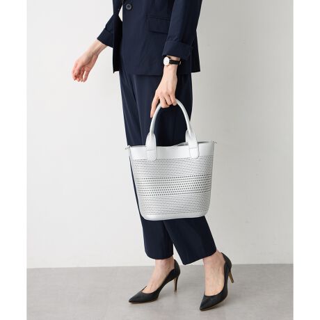 [型番:356101]軽やかに持てるパンチングバッグパンチングデザインが涼しげな印象を与える、夏にぴったりのバッグ。抜け感のある見た目でコーデに軽さをプラスし、シーズンムードを引き立てます。取り外し可能なショルダーストラップ付きで、手持ちと肩掛けの使い分けが可能。カジュアルからきれいめまで幅広く合わせやすく、スタイリングに合わせて持ち方を楽しめます。
