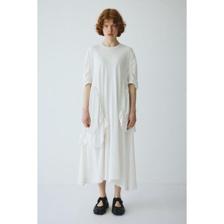 ポンチと布帛のドッキングワンピース台形のように広がったシルエットが特徴的で表面変化も楽しめる1枚。女性らしいA ラインのシルエットでサイドの布帛切り替えのデザインがポイント!一枚でスタイリングが決まります。BLACKはドレスとしても!ラウンドギャザードレス[注意事項] ※画像の商品はサンプルです。実際の商品と仕様、加工が若干異なる場合があります。 ※画像の商品は光の照射や角度、お使いのモニター環境により、実物と色味が異なる場合がございます。 ※着用、お取り扱いの際は、アテンションタグをご確認ください。