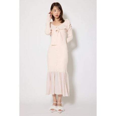 【レイヤードデザインとフロントタイ結びで華やかに決まるニットワンピース】■ポイントレイヤードスタイルが1着で叶うニットワンピース。裾は胸元にあしらった布帛と同じ生地を使用して華やかな女性らしいマーメイドデザインに落とし込みました。■ディテール襟元のデザインはまるでレイヤードされているかのようなデザインにしフロントはタイ結びに。すべてを固定されているので、崩れにくく着用するだけで様になるニットワンピースです。■スタイリングまだ寒い時期の足元はショートブーツで合わせて、温かくなってきたらミュールやサンダルで合わせるのもお勧めです。袖回りはスッキリデザインにしているので、どんな羽織でもバランス良くスタイリング可能です。■生地透け感:なし裏 地:なし伸縮性:ニット/あり、布帛/なし光沢感:なし厚 さ:ニット/中肉□薄手、布帛/薄手■商品のお気に入り登録お気に入りアイテムの再入荷・在庫1点などの通知を受け取ることができます。[注意事項]※画像の商品はサンプルです。実際の商品と仕様、加工が若干異なる場合があります。※画像の商品は光の照射や角度、お使いのモニター環境により、実物と色味が異なる場合がございます。※着用、お取り扱いの際は、アテンションタグをご確認ください。