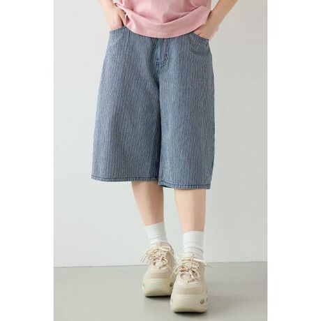 ■ポイント全6色展開のバミューダパンツ。サイズは2サイズ展開で、体型やお好みのシルエットでお選びいただけます。ベーシックに合わせやすい無地カラーから、ストライプ、プリント柄などバリエーションが豊富で幅広いコーディネートに活躍します。■ディテールゆったりとしたシルエットに、膝までの丈感が下半身のカバーアップに最適です。■スタイリング選ぶカラーによってさまざまなテイストに落とし込みやすいです。サンダルや、ボリュームのあるスニーカーなど、カジュアルなアイテムと相性抜群です。■生地BLK、BLUはリサイクルデニム素材を使用しています。着用や洗濯を繰り返すことで、風合いの変化を楽しみながら自分だけの1本に育てていただけます。しっかりとした素材感で、きれいなシルエットが出るのもポイントです。■透け感:なし■裏 地:なし■伸縮性:なし■光沢感:なし※お取り扱い上のご注意BLK、BLUはリサイクルデニム素材のため、色落ちや他の衣類への色移りが生じる場合があります。[注意事項]※画像の商品はサンプルです。実際の商品と仕様、加工が若干異なる場合があります。※画像の商品は光の照射や角度、お使いのモニター環境により、実物と色味が異なる場合がございます。※着用、お取り扱いの際は、アテンションタグをご確認ください。