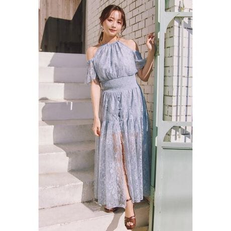 【森香澄さん着用】2WAYホルターネックレースロンパース